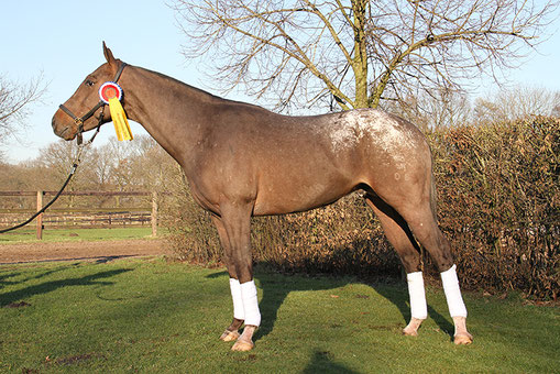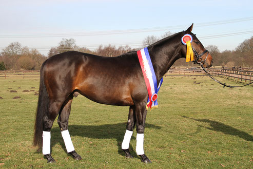 Dieser ausdrucksstarke Hengst Champagne Lanson Win, aus der Zucht von Deutschlands ehemals bestem Polospieler Thomas Winter ist, als Sieger seiner Rasse "Deutsches Polopferd" prämiert und in das Hengstbucht 1 des Pferdestammbuchs Schleswig Holstein/ Hamburg e.V. eingetragen.